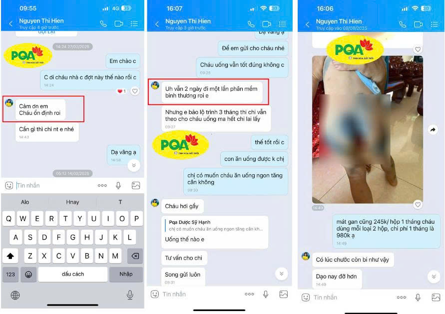 Sau khi tìm hiểu, và được tư vấn từ Dược sĩ Hạnh, chị Hiền quyết định cho con sử dụng 2 sản phẩm: PQA Nhuận Tràng, PQA Mát Gan và PQA Kiện Tỳ Ích Khí.