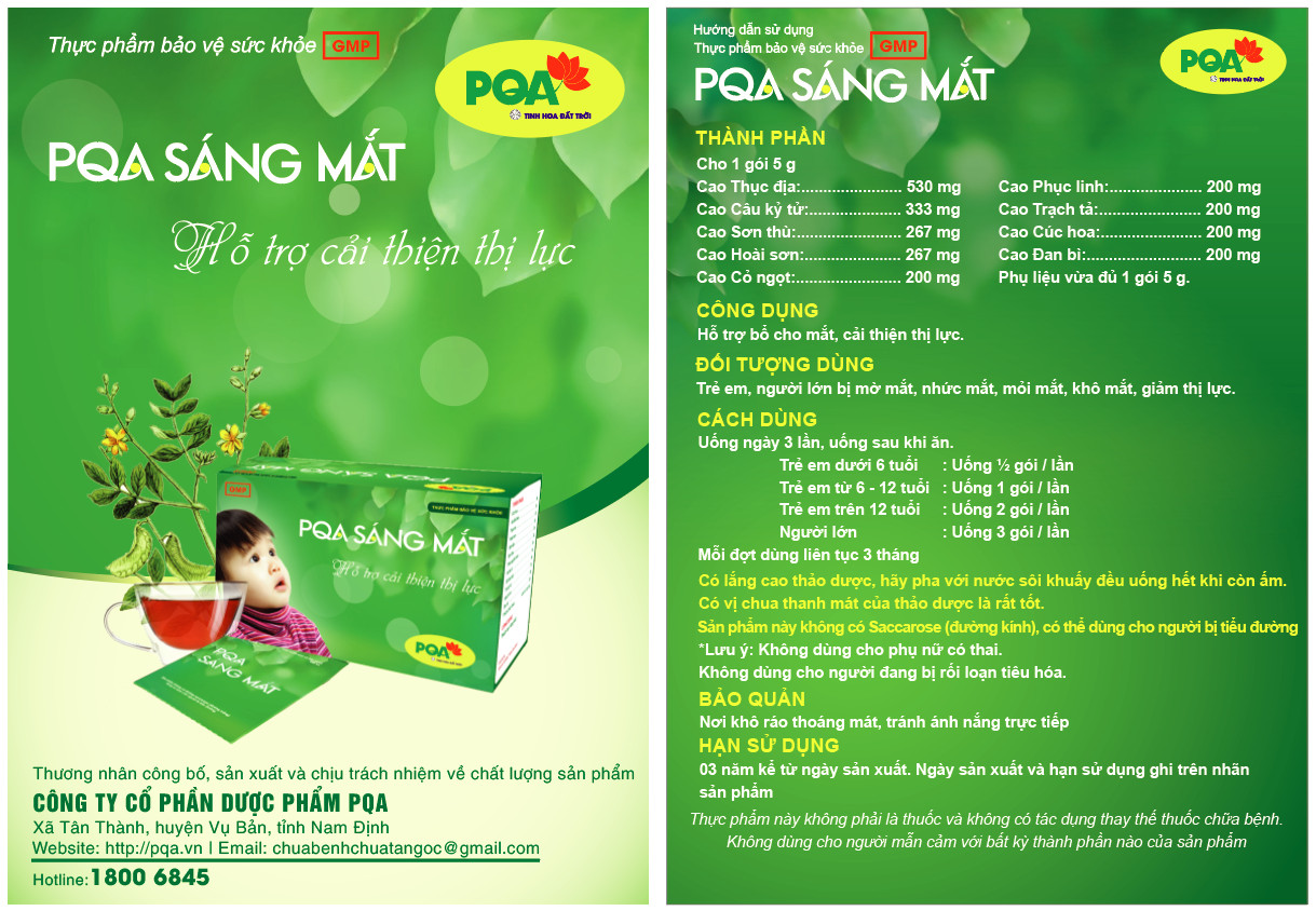 Cốm PQA Sáng mắt được sản xuất ứng dụng từ bài thuốc Kỷ cúc địa hoàng hoàn (Theo sách "Thuốc Nam thuốc Bắc và các phương thang chữa bệnh", trang 146) có gia giảm.