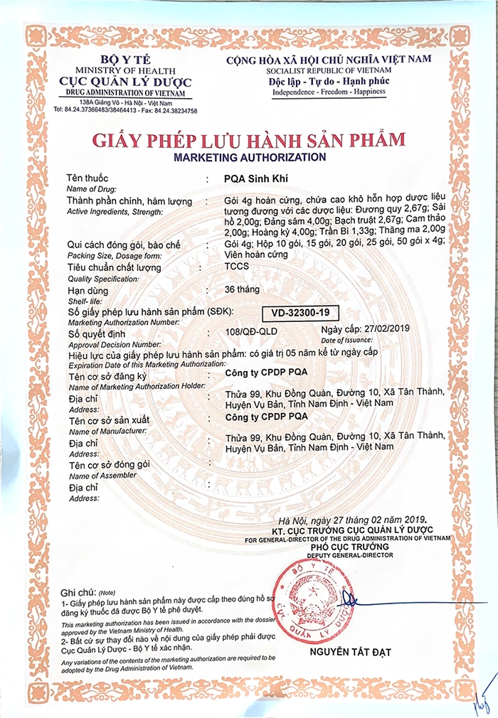 Lưu ý: Thông tin thuốc PQA Sinh khí bên trên chỉ nhằm mục đích tham khảo, tra cứu - Khi dùng thuốc cần tuyệt đối tuân theo theo hướng dẫn của Bác sĩ.